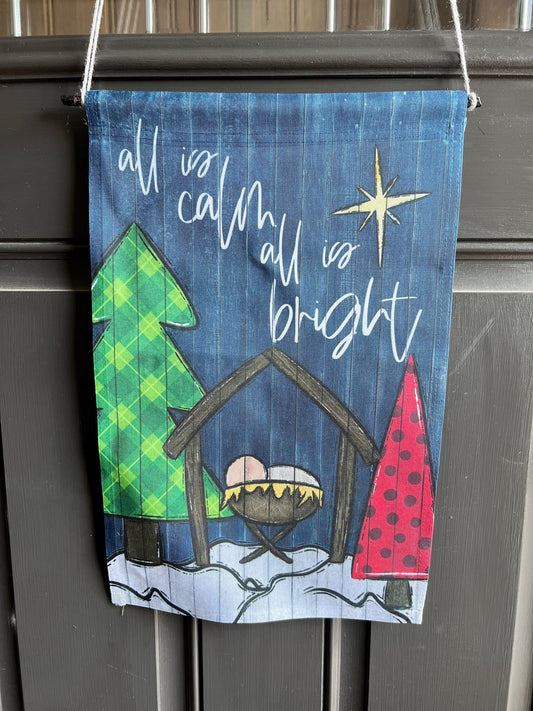 All is Calm, All is Bright. Manger Scene Christmas Garden Flag/Door Hanger