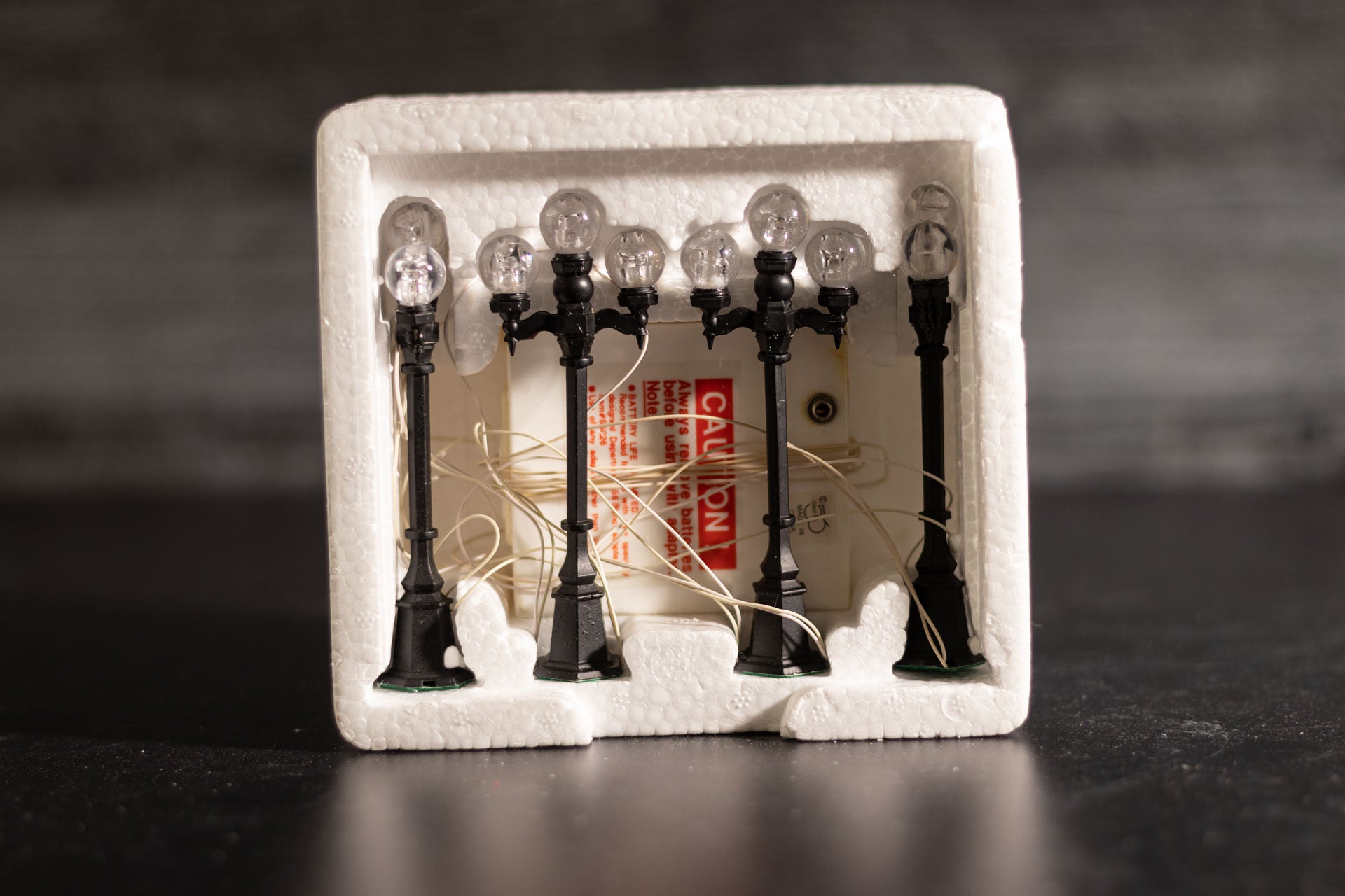 The building is expertly hand-painted, showcasing vibrant colors and lifelike textures that add depth and dimension to your Christmas village. The meticulous attention to detail extends to the surrounding landscaping as well. Imagine winding cobblestone paths lined with frosted trees, cheerful townspeople, and flickering street lamps, all contributing to the magical ambiance of your holiday display.