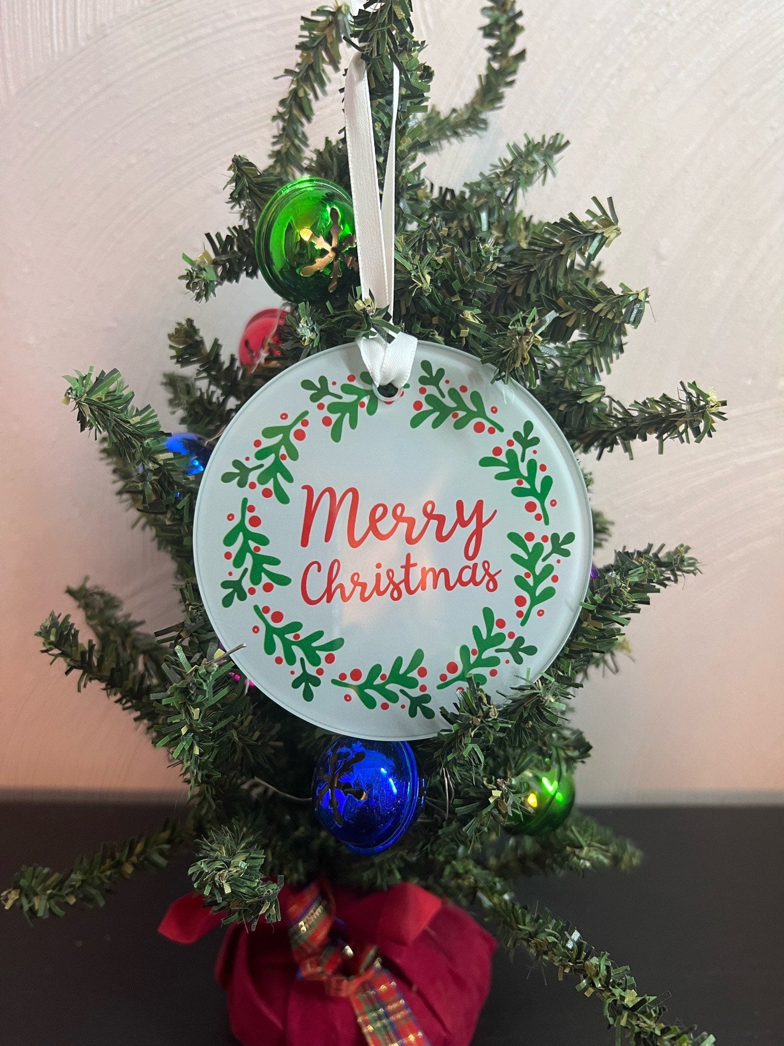 This beautiful 3.5” glass ornament wishes you a Merry Christmas!