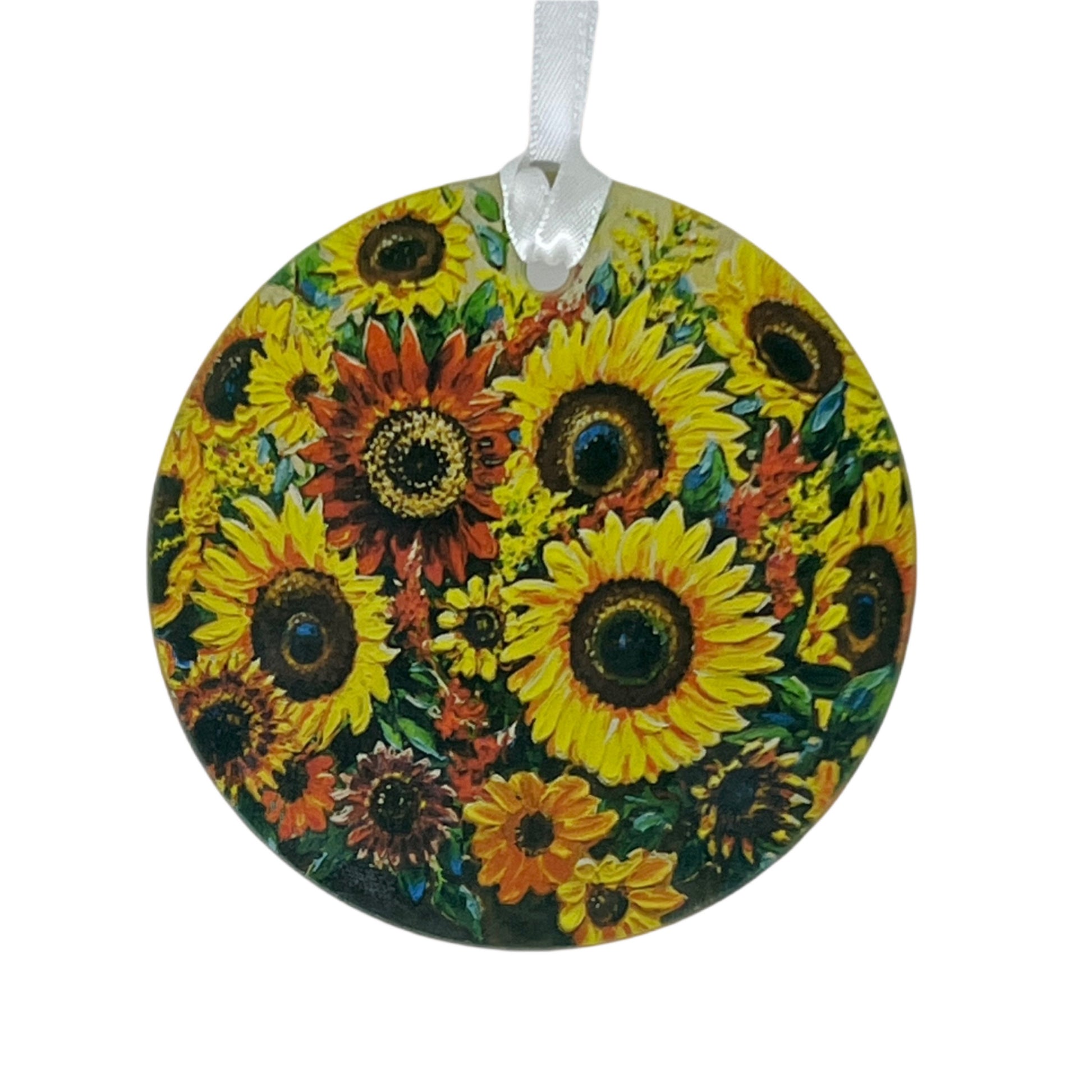Nataliia Sytnyk “Bouquet of Sunflowers” Painting inspired Glass Ornament / Suncatcher