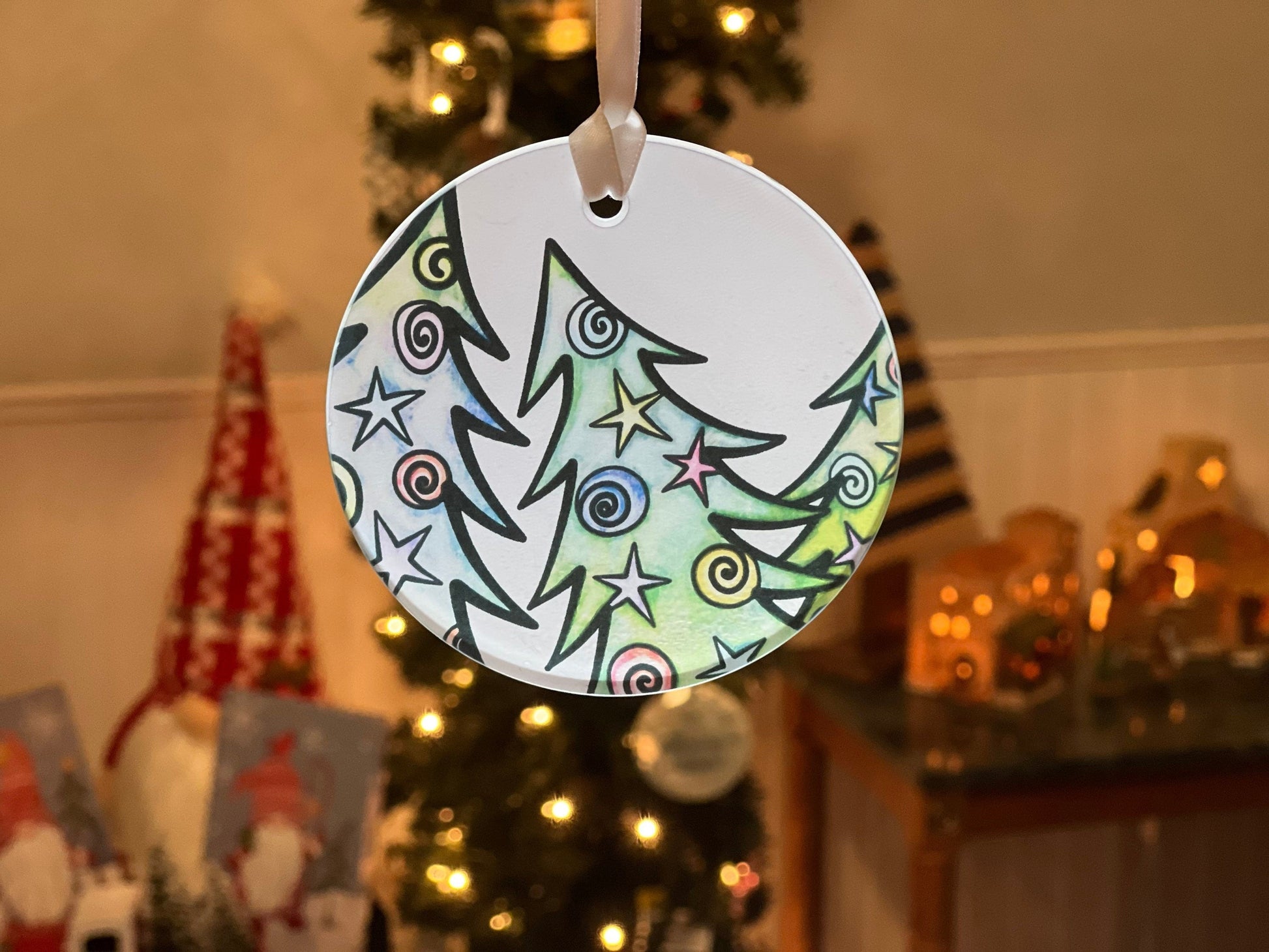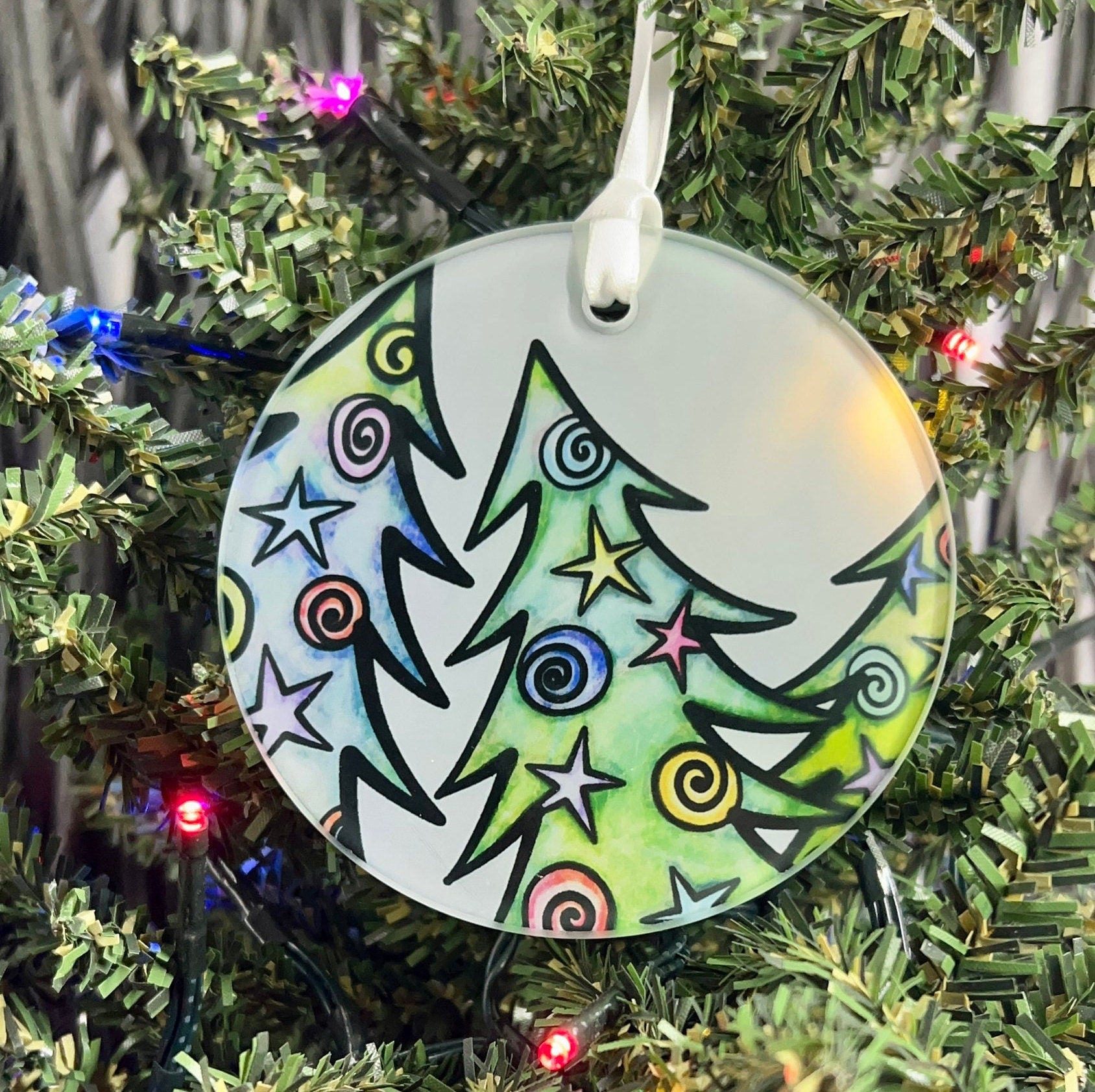 Neon Christmas Trees Glass Ornament / Suncatcher