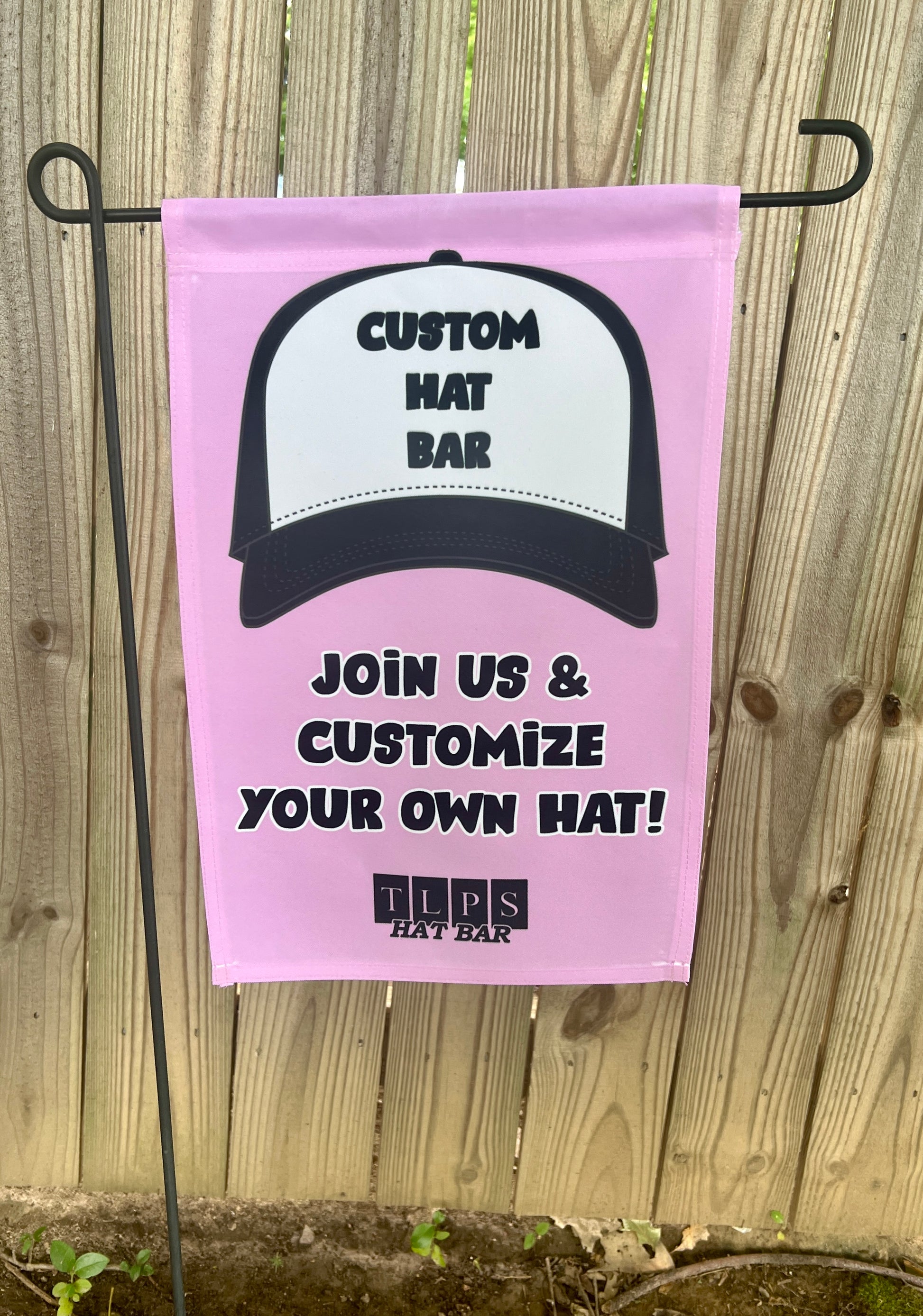 Get your own personalized garden flag to display at shows for your custom hat bar!