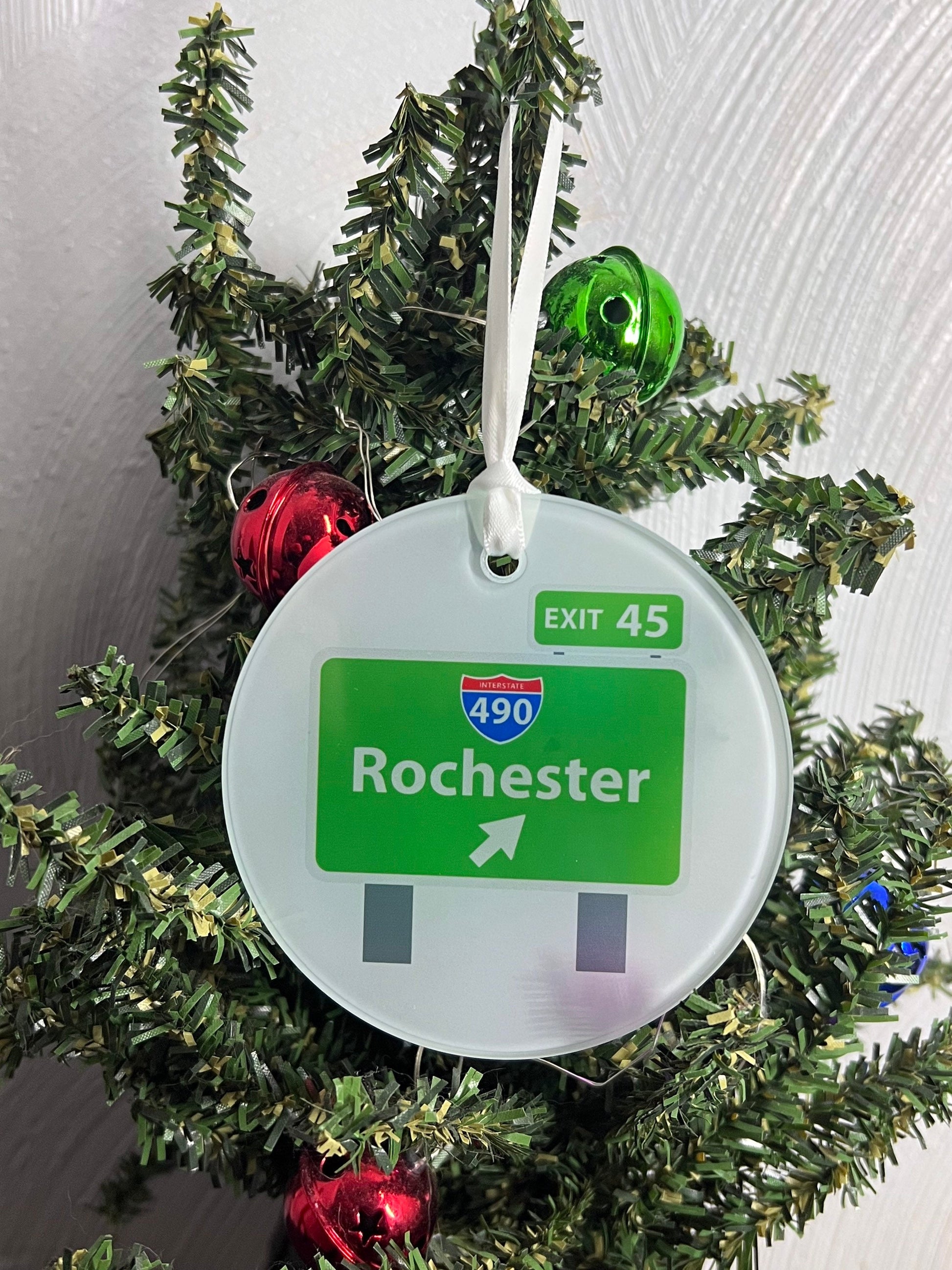 Rochester, NY 490 Sign Glass Ornament / Suncatcher