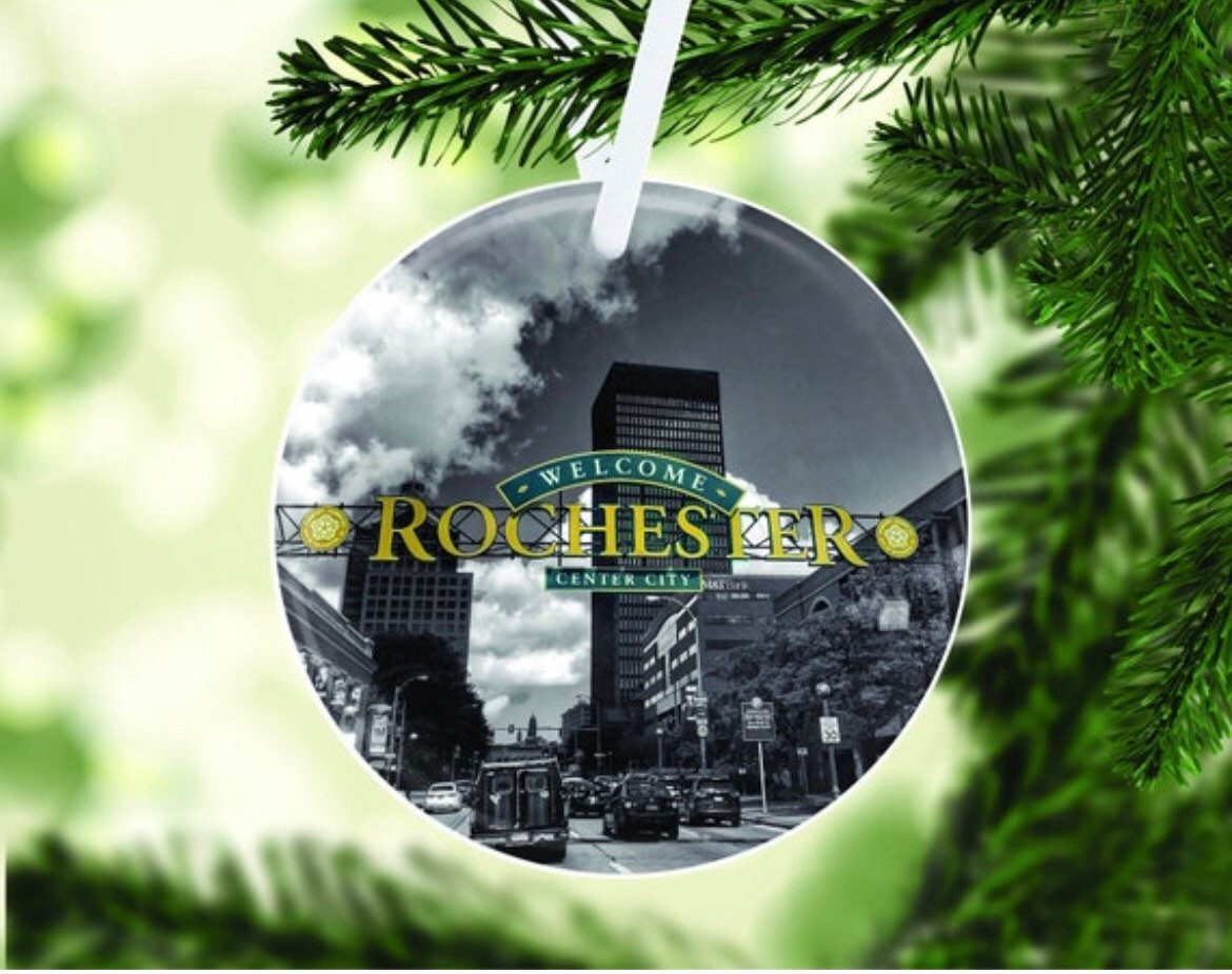 Hang it in your window as a suncatcher or on your tree as a holiday ornament. The ornament also makes a great gift for anyone who loves Rochester.